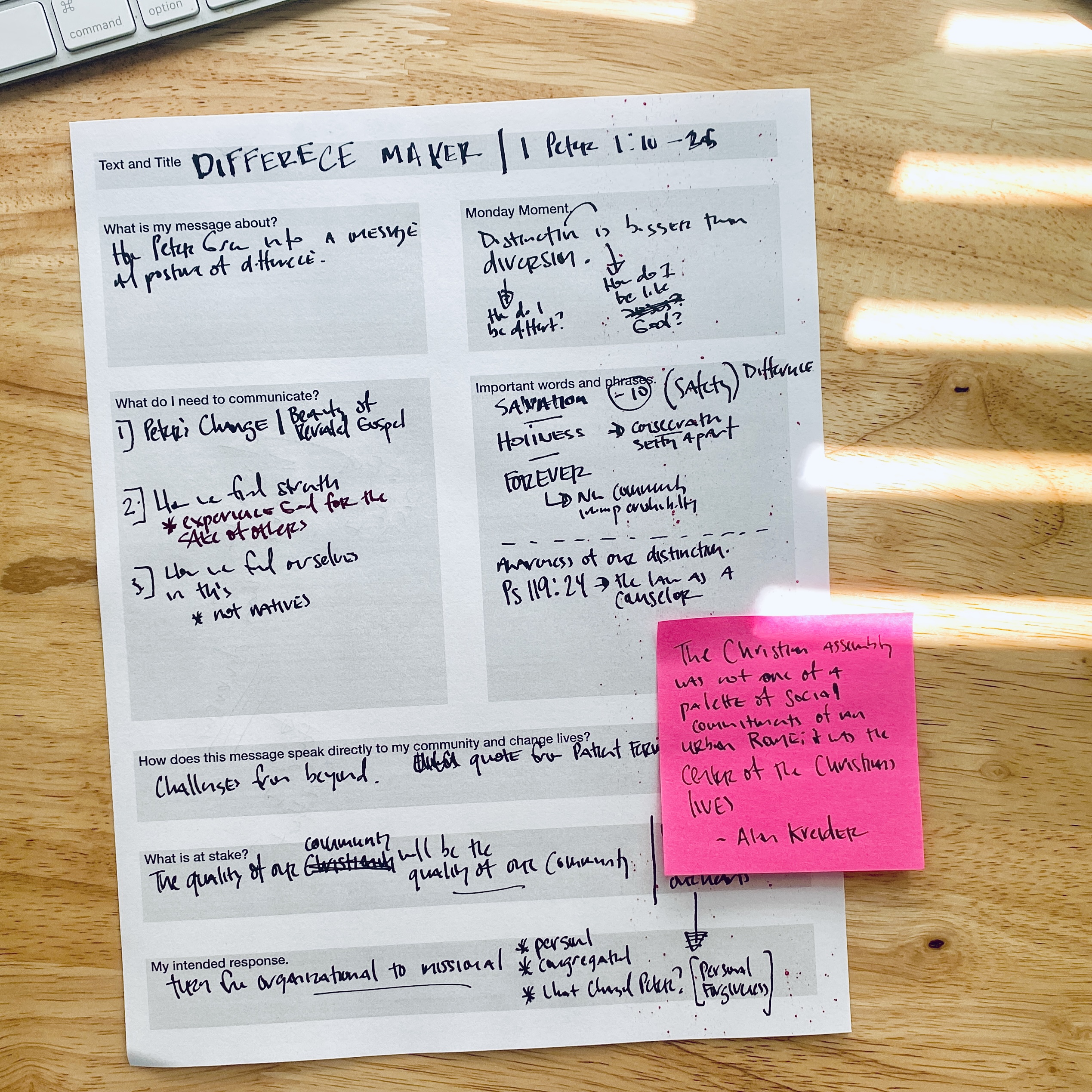 Have you ever struggled with clarity of preparation and process? I drew out the very first sermon sheet YEARS ago and used it privately as a tool to keep myself focused and my work on having clearly communicated sermons.